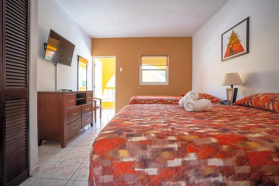 This Studio features free Wi-Fi, air conditioning, wardrobe, flat-screen cable TV. The bathroom is private, and the kitchenette comes with stove, coffee maker, microwave and fridge. This room type has a private entrance with two queen beds, it has a cozy private balcony and a marvelous pool view.